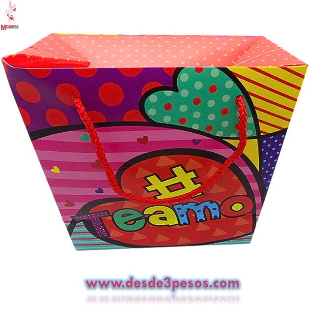 Bolsa de Regalo en forma de caja CHICA, decorada de San Valentín con Diseños Diamantados 21 x 28 cm.