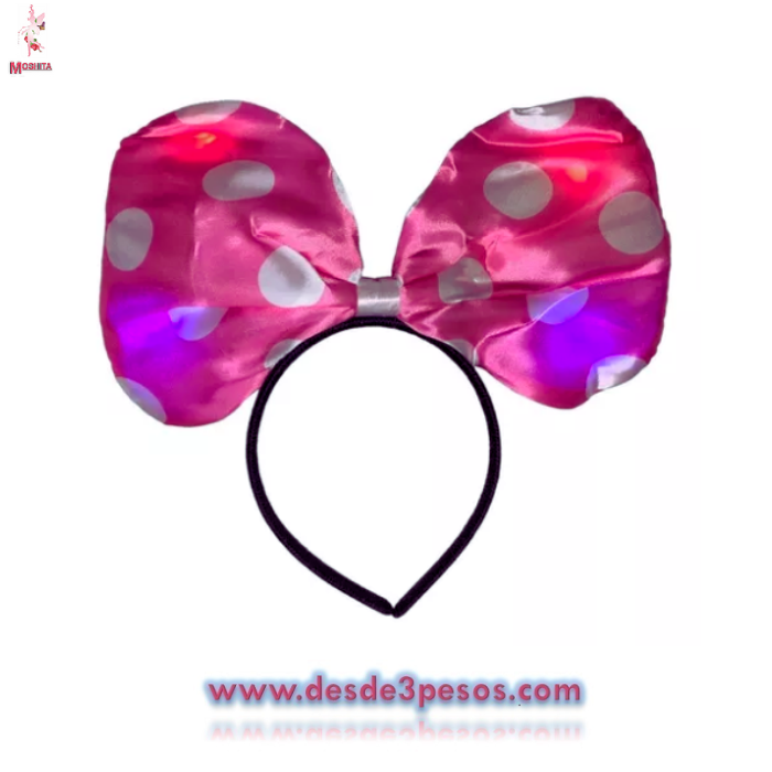 Diadema Minnie Mouse Tela con Luz Led, Fiesta en colores 23 x 23cm.