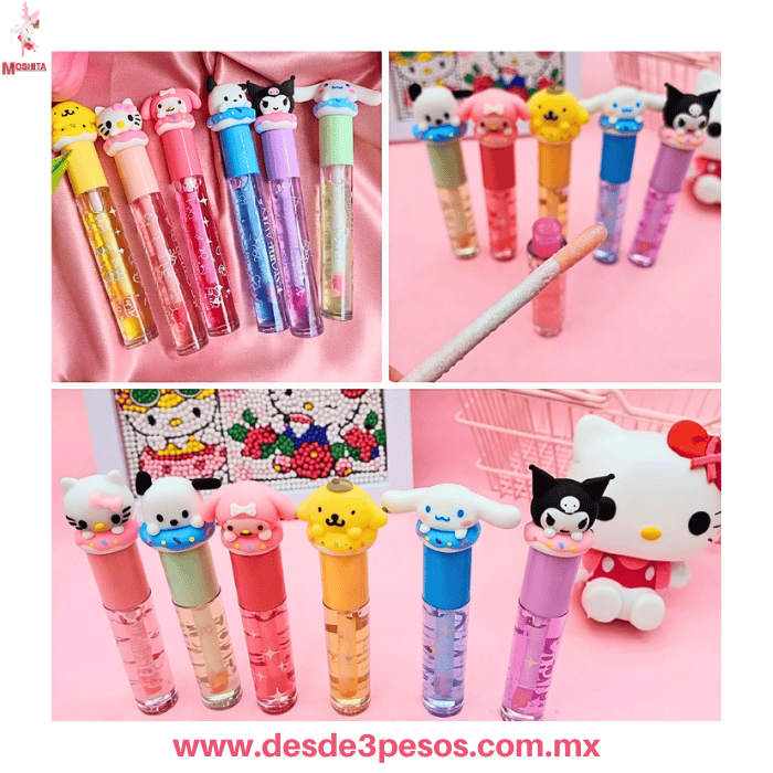 Lip Gloss con Glitter FAVOR BEAUTY y detalle con figura de goma 13 x 1 cm. Caja con 24 pza. precio por 1 pza. LG3206