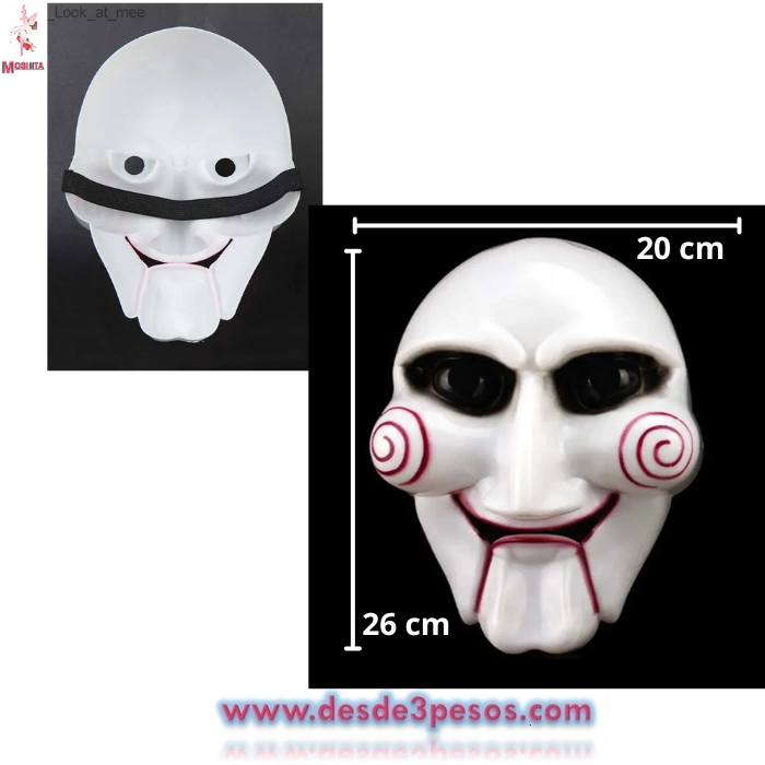 Mascara de Para Halloween de Plastico Duro Resistente en forma de SAW 17 x 23 cm