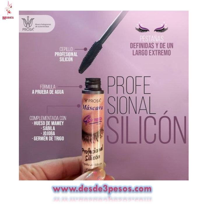 Mascara de Pestañas PROSA 4 en uno Profesional Silicon contra Agua 13g. tapa gris obscuro
