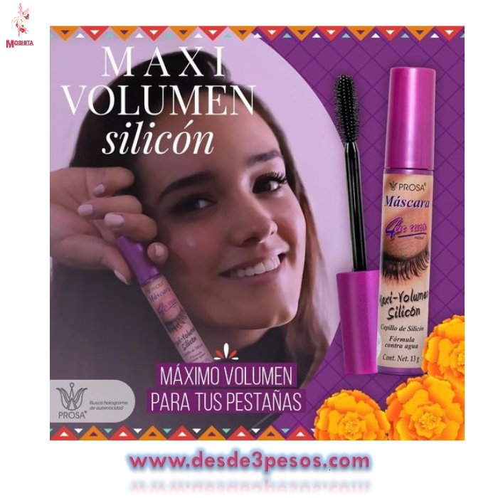PROSA Mascara 4 en 1 Maxi - Volumen Silicon Formula contra agua 13g. Tapa Magenta