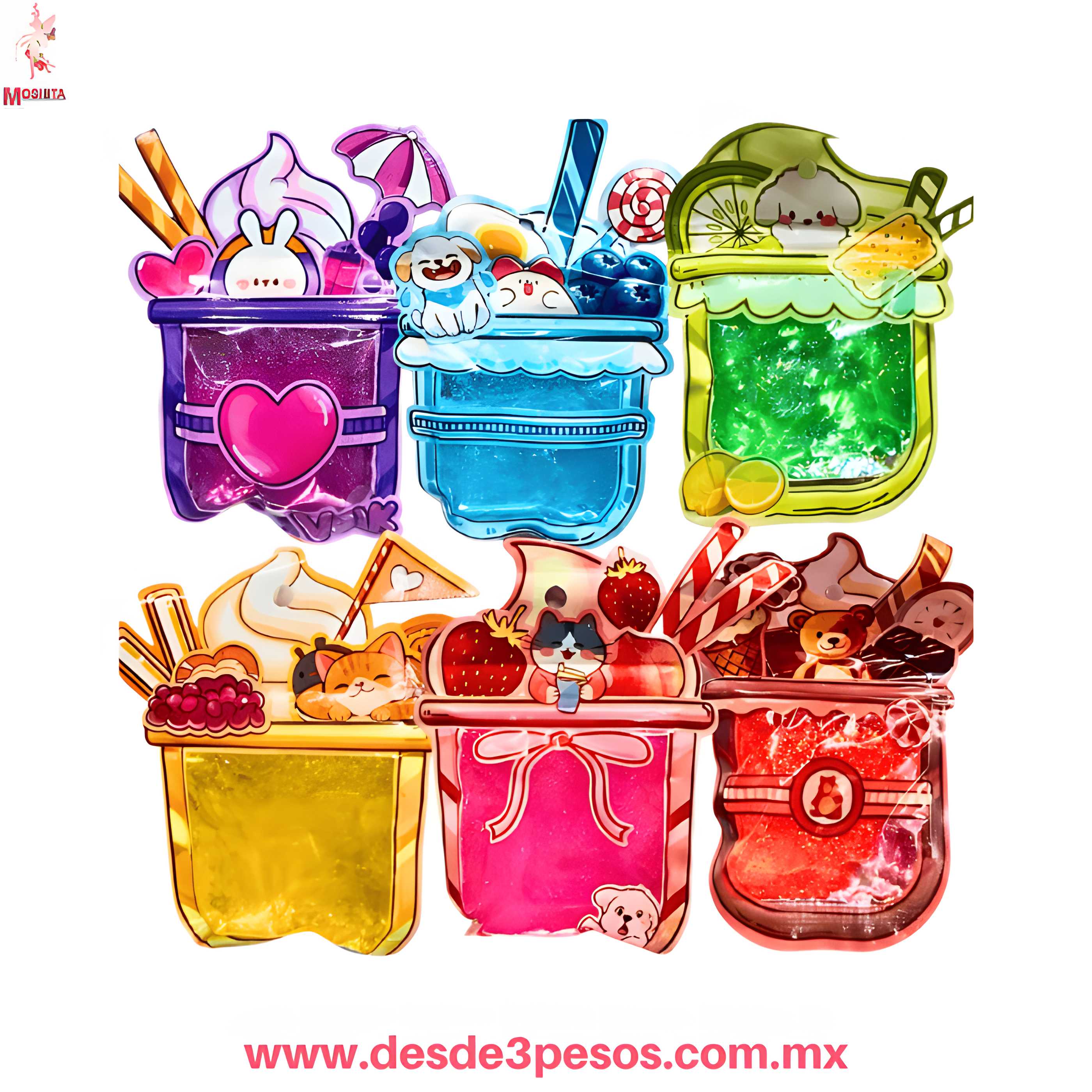 Sobre de Slime Frutal Cristal en colores con glitter 18 x 14 cm.