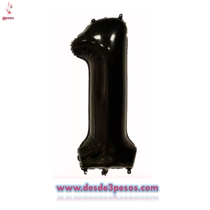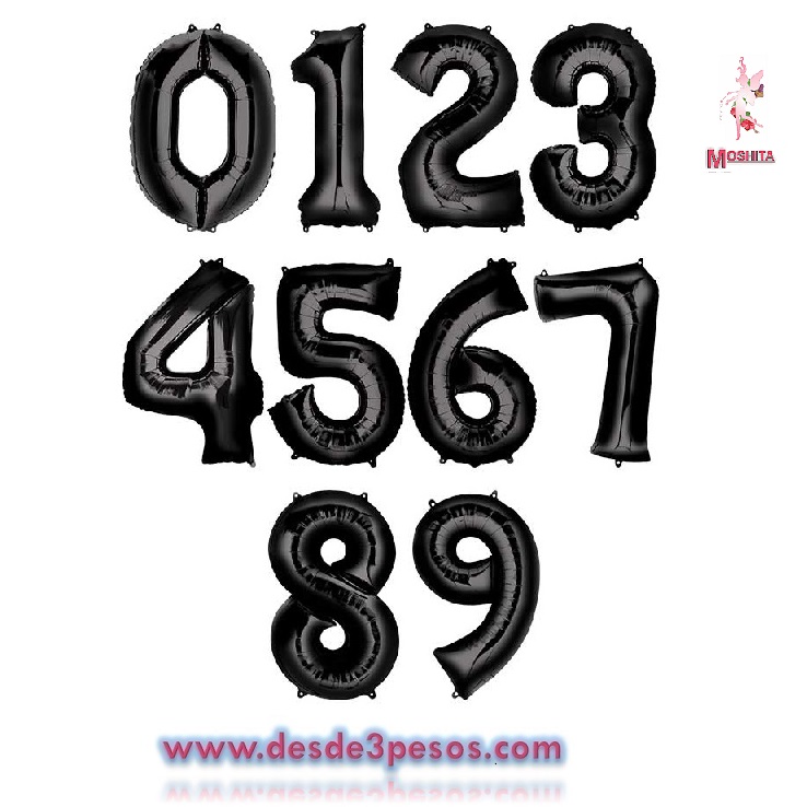 Bolsa con 9 Globos de Numeros del 1 al 9 en color NEGRO 68 x 46cm