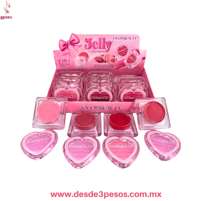 2 en 1 Rubor y Labial FAVOR BEAUTY 3 Tonos 6 x 6 cm caja con 12 pza. precio por 1 pza. LG3777