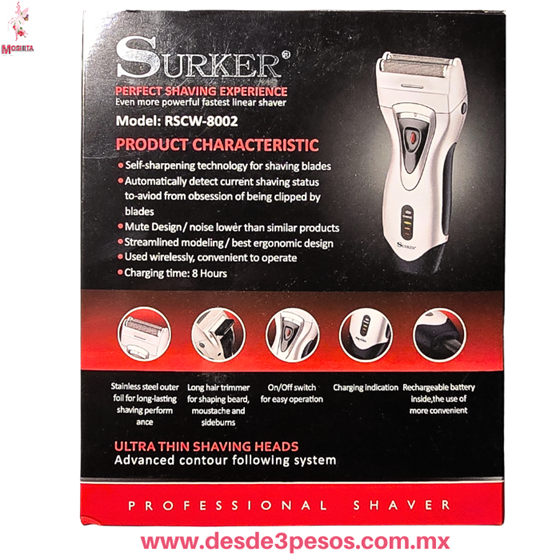 | Afeitadora Recargable Profesional SURKER RSCW-8002, Ajustable a la forma de tu cara. Acero Inoxidable. Marca Surker