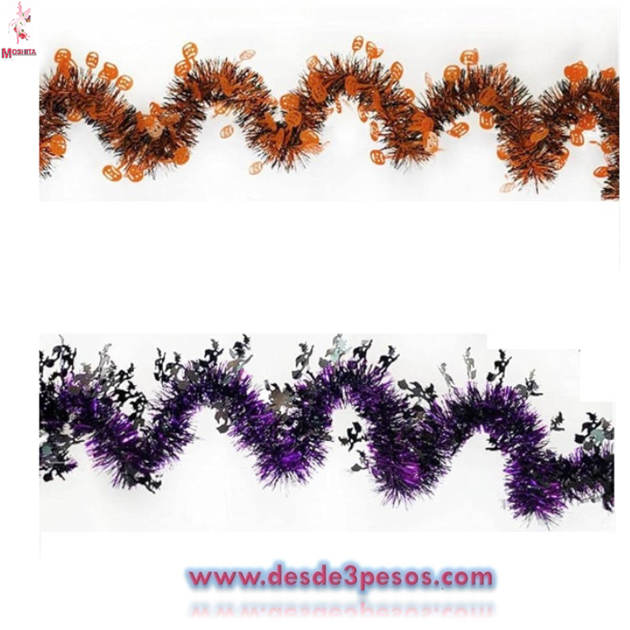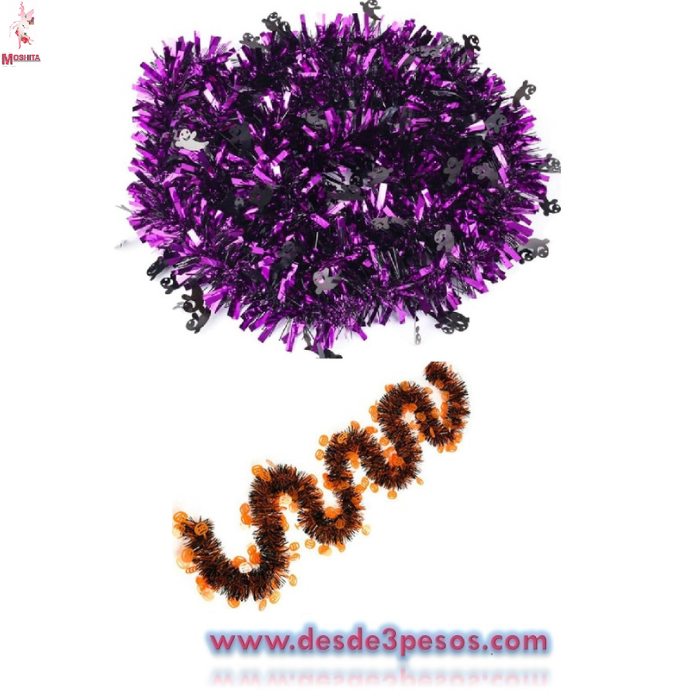 Atados de 10 tiras de Escarcha Metálica para Halloween con figuras colgantes 1.60 de largo