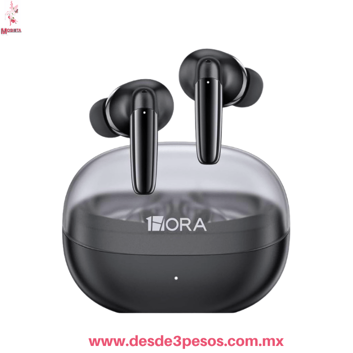 ¡Prepárate para una experiencia de sonido que te moverá! ?? Presentamos los nuevos audífonos inalámbricos 1HORA, diseñados para quienes aman la libertad, el estilo y la calidad de audio sin compromisos. ¿Por qué te encantarán? ?? Sonido Superior, Sumérgete en tus canciones favoritas con bajos profundos y agudos cristalinos, ¡cada nota sonará increíble! ? Diseño Único y Moderno, Su estuche de carga no solo es compacto, sino que tiene una espectacular tapa translúcida que te permite ver tus audífonos. ¡Un toque de elegancia que destaca! ????? Comodidad para todo el día, Gracias a su diseño ergonómico y ligero, se ajustan perfectamente a tus oídos para que los uses por horas sin darte cuenta, ya sea en el gimnasio, la oficina o en la calle. ?? Batería que no te abandona, Disfruta de tu música por más tiempo. El estuche de carga te brinda energía extra para que nunca te quedes a medias, y su luz LED te indica cuándo es momento de recargar. ?? Llamadas Claras y Controles Táctiles, Conéctate fácilmente a través de Bluetooth y maneja tu música o contesta llamadas con un simple toque, ¡sin sacar tu celular! ¡No esperes más para liberarte de los cables! Añádelos a tu carrito y lleva tu música a otro nivel. ????