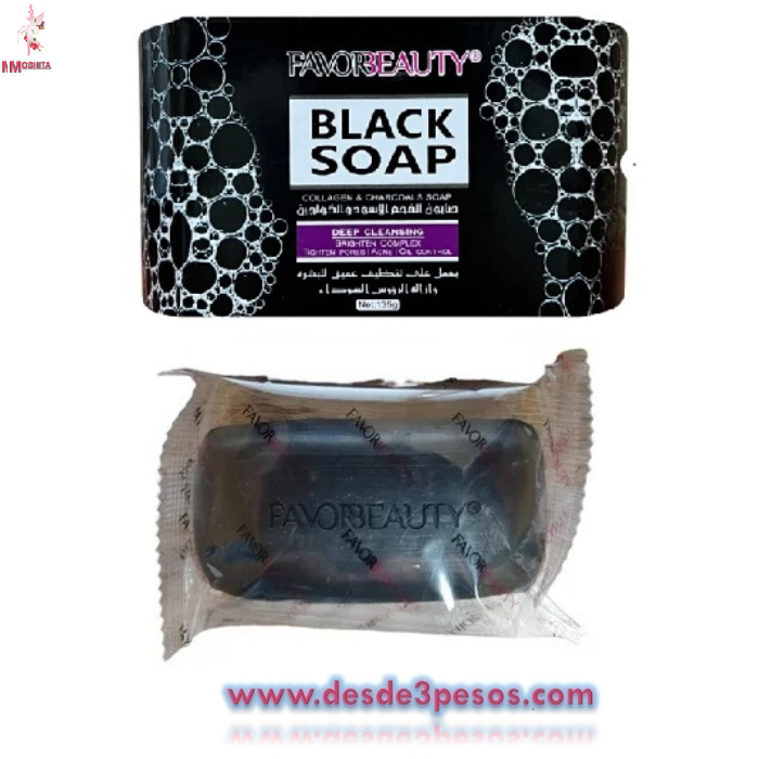 Barra de Jabón Carbón Activado Colágeno Elimina Puntos Negros y Acné 135g.