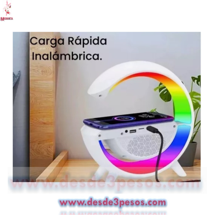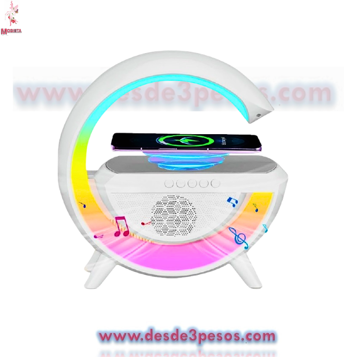 Bocina Google bluetooth con cargador inalámbrico para Celular y lampara Led de mesa 25 x 21.5 cm.
