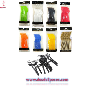 Bolsa con 20 Tenedores Desechables de Platico en colores 16cm. De largo