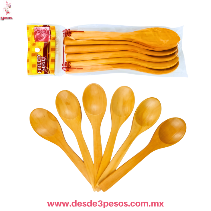 Bolsa con 6 Cucharas Soperas de Bambú 17 x 4 cm