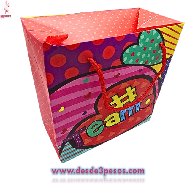Bolsa de Regalo en forma de caja GRANDE, decorada de San Valentín con Diseños Diamantados 36 x 27 cm.