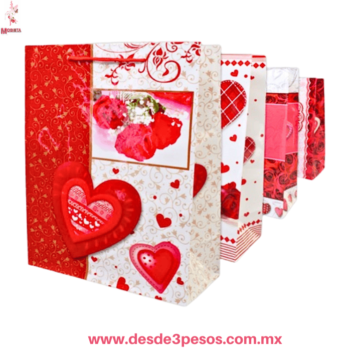 Bolsa para Regalo 3D de San Valentin en Carton Duro decorada con diamantina varios modelos 40 x 31 cm.