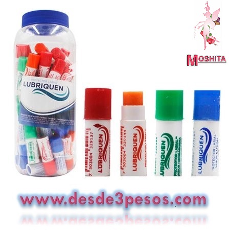 Bote con 60pza. de Protector labial 6 Sabores Cereza, Naranja, Hierbabuena, Maracuya, Tutti Fruti y Natural cont. 25g.