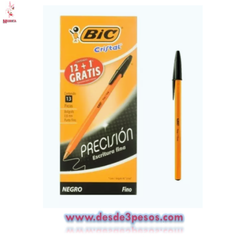 Caja con 12 Pluma BIC PUNTO FINO en color NEGRO