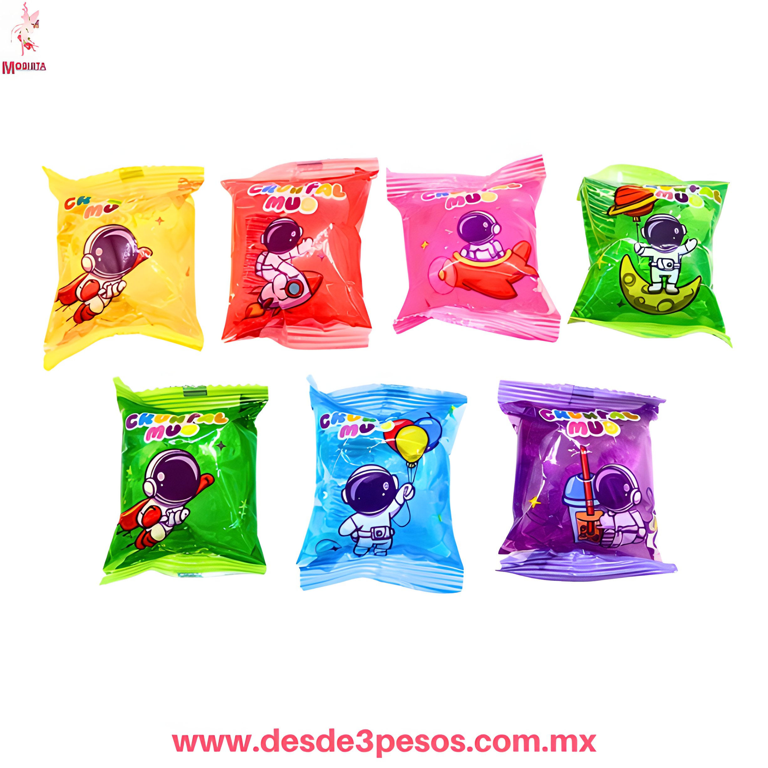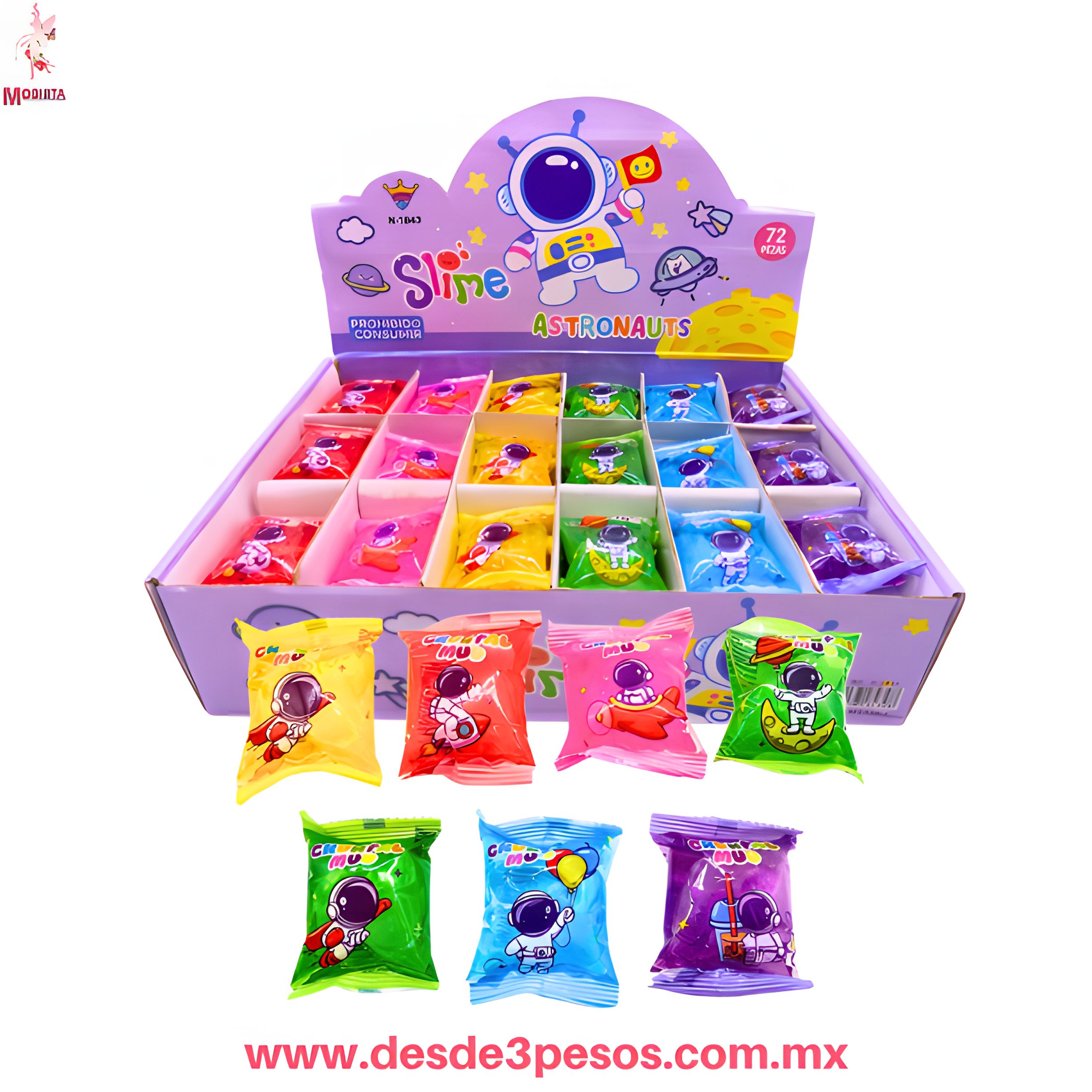Caja con 72 Pzas de Mini Sobre de Slime Astronauta con glitter 8 x 6 cm H-1843