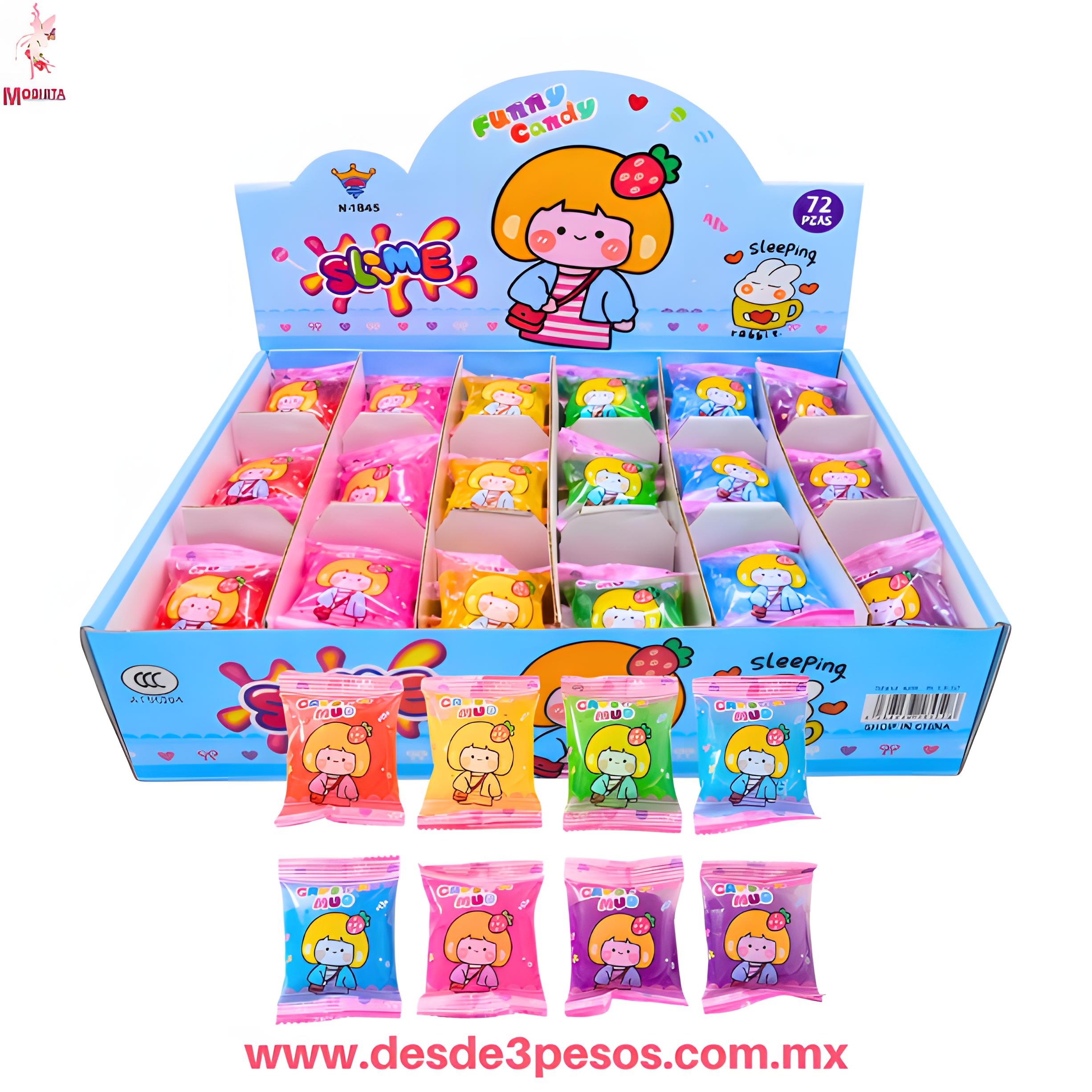 Caja con 72 Pzas de Mini Sobre de Slime Candy con glitter 8 x 6 cm H-1845