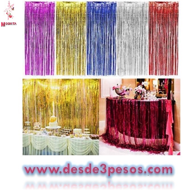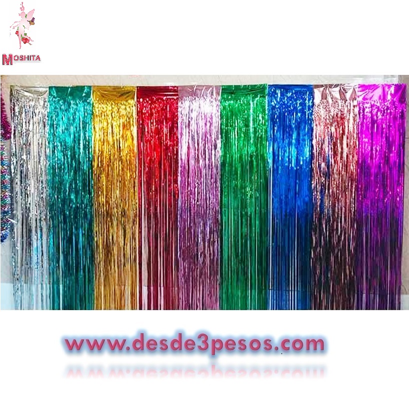 Cortinas Para Fiestas Metalicas de Flecos en Varios Colores 2 Metros de Largo x 1 Metro de Ancho