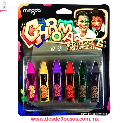 ?Buscas diversi?n para fiestas, carnavales o simplemente un d?a creativo en casa? ?? Nuestros crayones son s?per f?ciles de usar, ?como dibujar en papel! Adem?s, su f?rmula especial los hace seguros para la piel y muy sencillos de limpiar con agua y jab?n, ?sin dejar manchas! ????