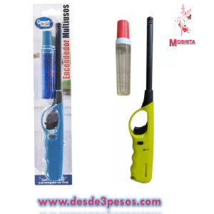 Encendedor con Gas Recargable + Frasco De Gas con Repuesto 26cm en colores