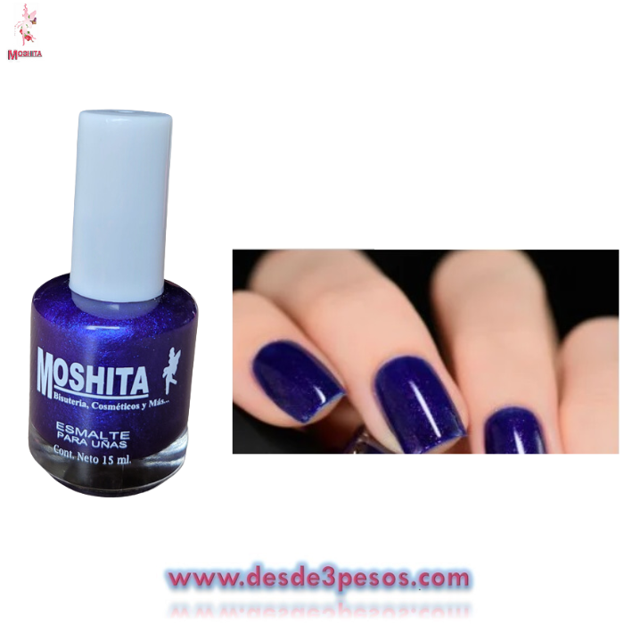 Esmalte para uñas MOSHITA en color AZUL INDIGO BRILLOSO 15ml.