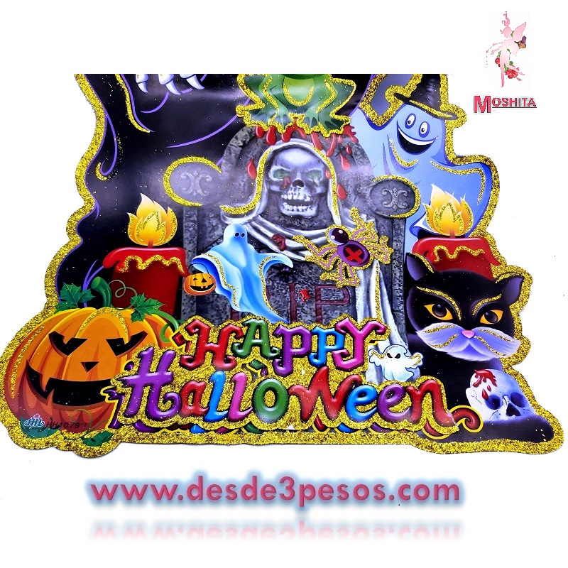 Figuras de Carton MEDIANAS Halloween en 2da dimension Diamantado en varios modelos del dia de muertos 40 x 28 cm