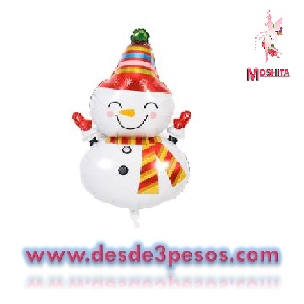 Globo Metalico Navideño Figura de Muñeco de Nieve 90 x 42cm.