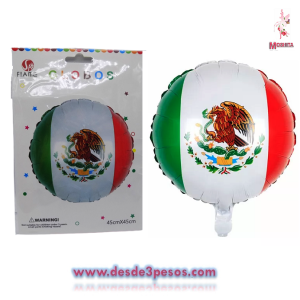 Globo redondo tricolor Bandera de Mexico 45cm. De diametro