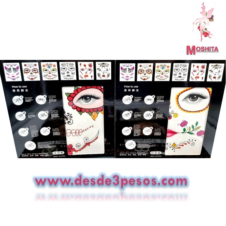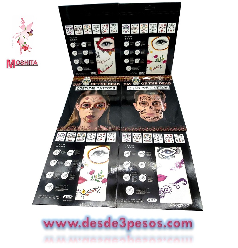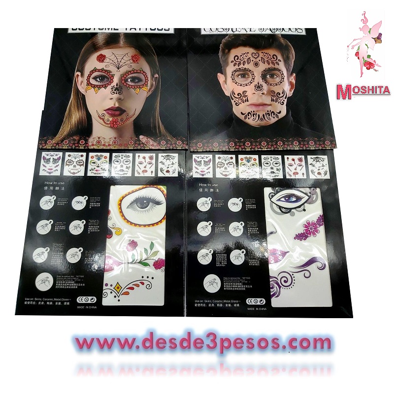 Hoja de Tatuaje Catrina Halloween Para hombre y mujer, Day of the Death , Catrinas 18.5 x 14.5cm.