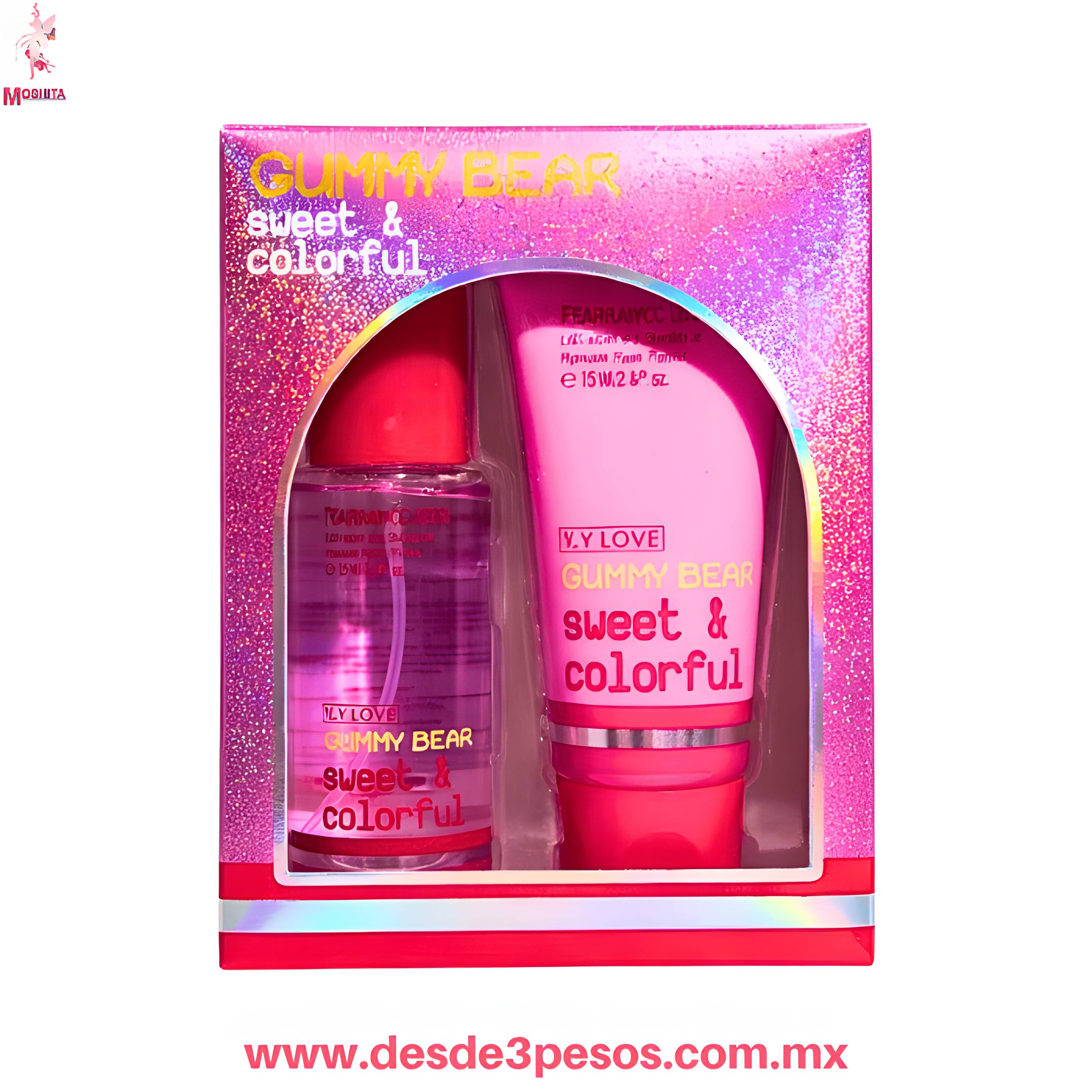 Juego de Perfume y Crema GUMMY BEAR aroma frutal fresa 80 ml. Y 75ml. Rojo