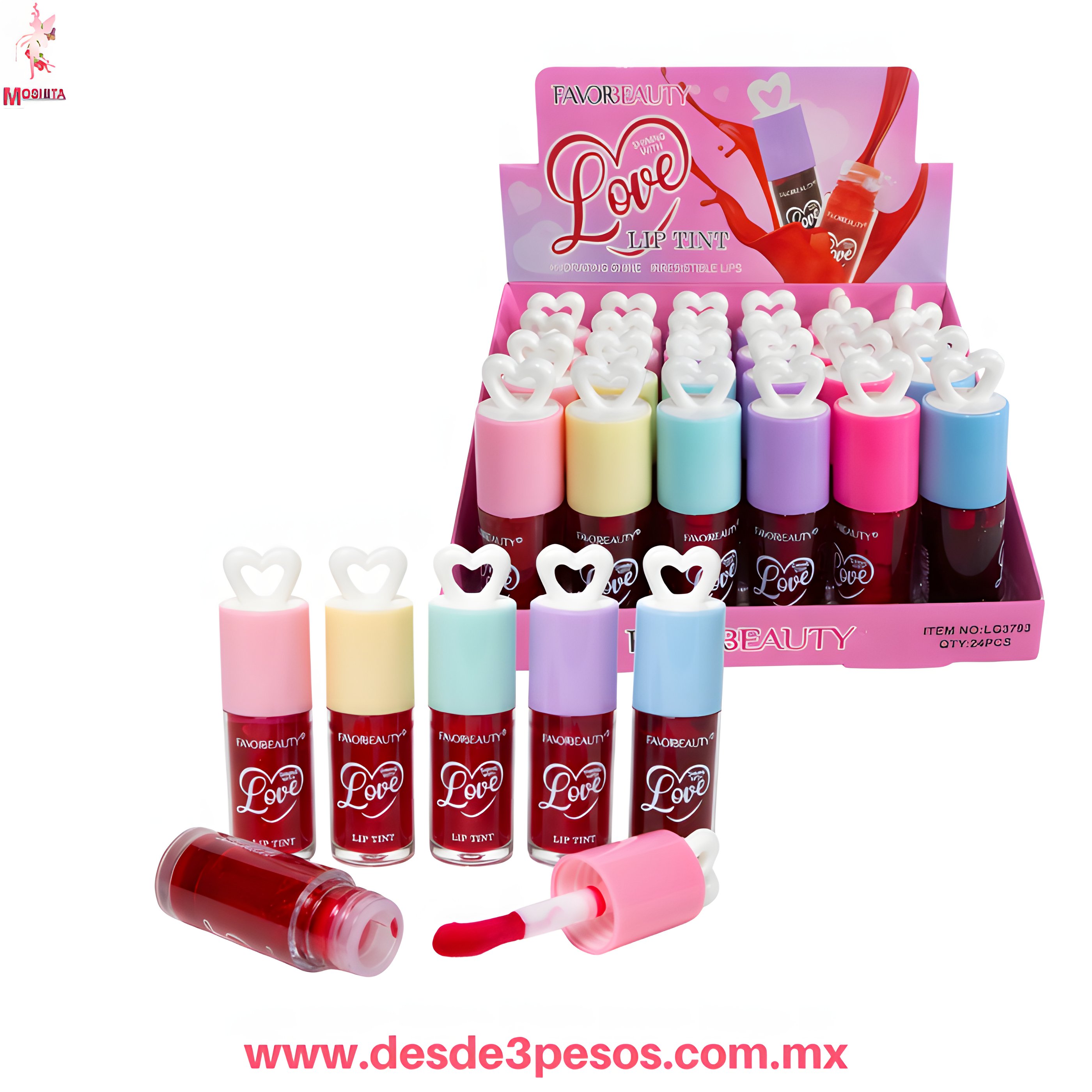 Labial Tinta tonos rojos FAVOR BEAUTY 9 x 3 cm. Caja con 24 pza. precio por pza. LG3793