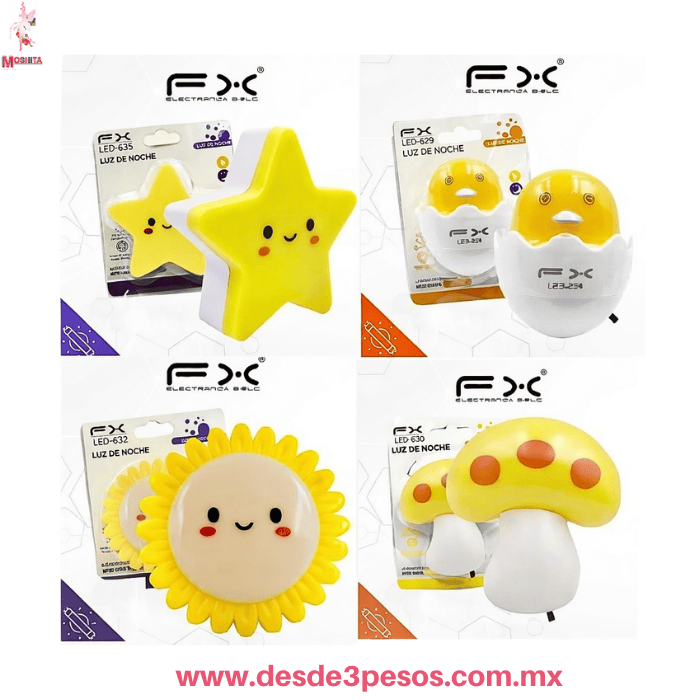 Lampara de Noche con Luz Led varias figuras acabado de plastico 8 x 9 cm aprox.