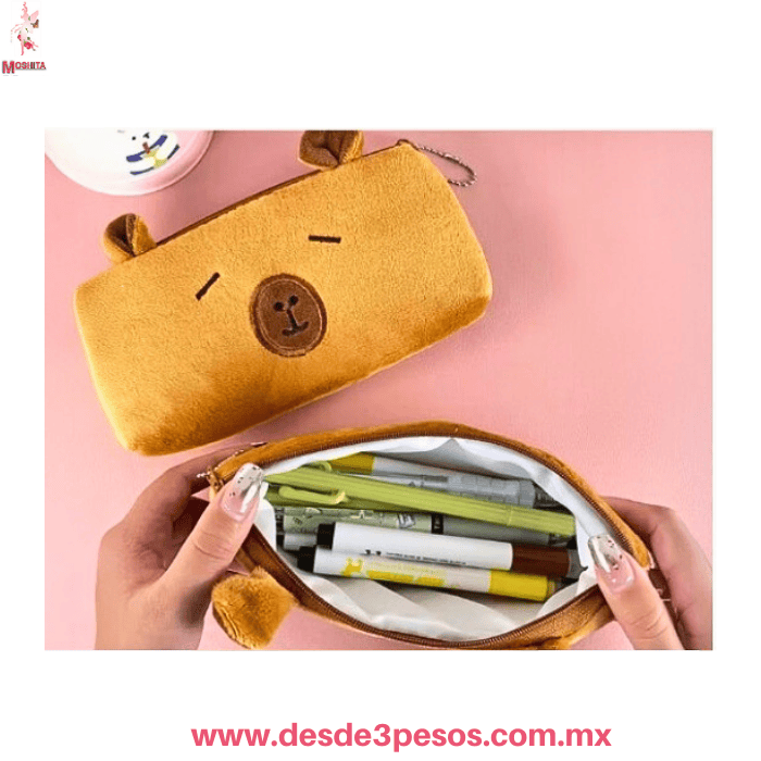 Lapicera Felpa Capibara de Cierre 20 x 11cm. Tono café