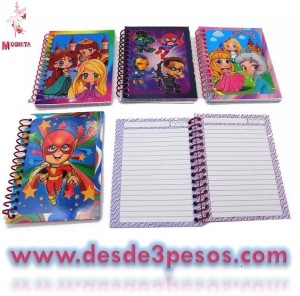 Libreta con 35 hojas de raya y pasta decorada con dia, mes y año 10.5 x 13.5 cm