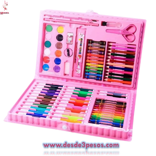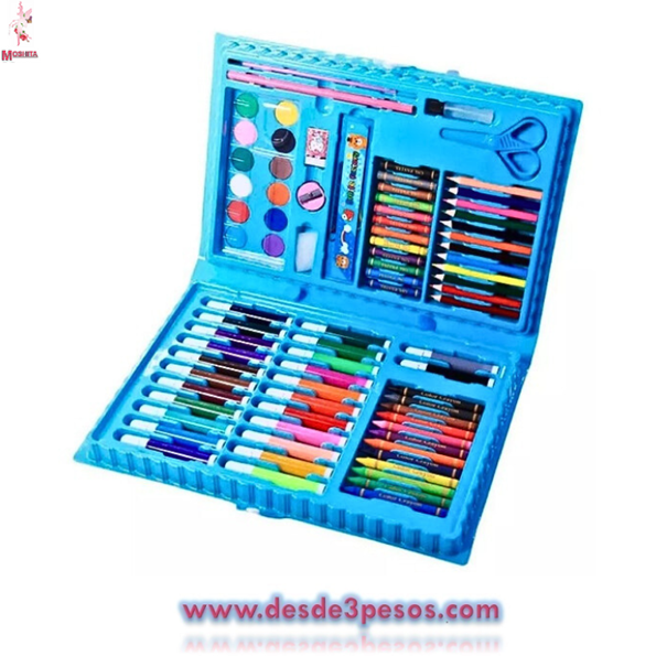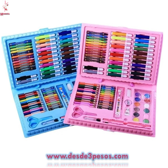 Crayolas, colores, plumines, acuarelas, goma, sacapuntas y tijeras
