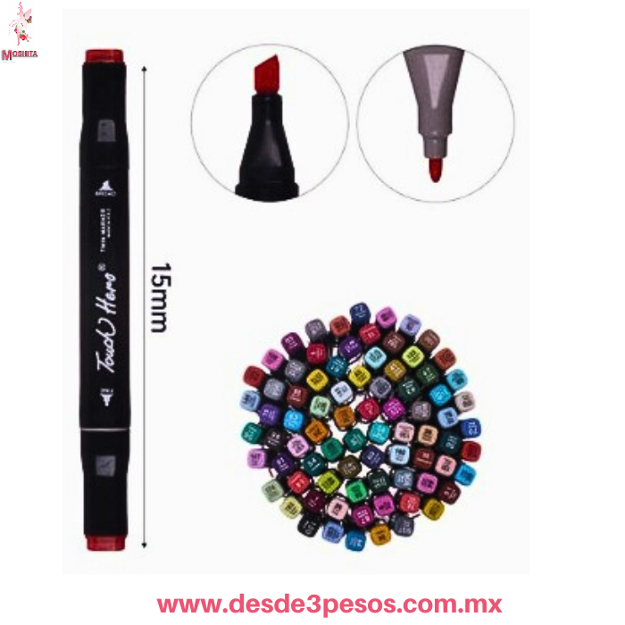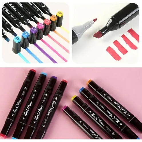 ¡Despega hacia un universo de color con tu nuevo set de marcadores! Lleva tu creatividad a otra galaxia con este increíble set de 36 marcadores de la marca Touch Hero. Diseñados tanto para artistas emergentes como para entusiastas del dibujo, estos plumones son la herramienta perfecta para darle vida a todas tus ideas. Cada marcador cuenta con doble punta para una versatilidad sin límites: Punta Fina: Ideal para trazos precisos, contornos y detalles delicados. Punta Ancha Biselada: Perfecta para rellenar grandes áreas, hacer caligrafía y crear sombreados impactantes.