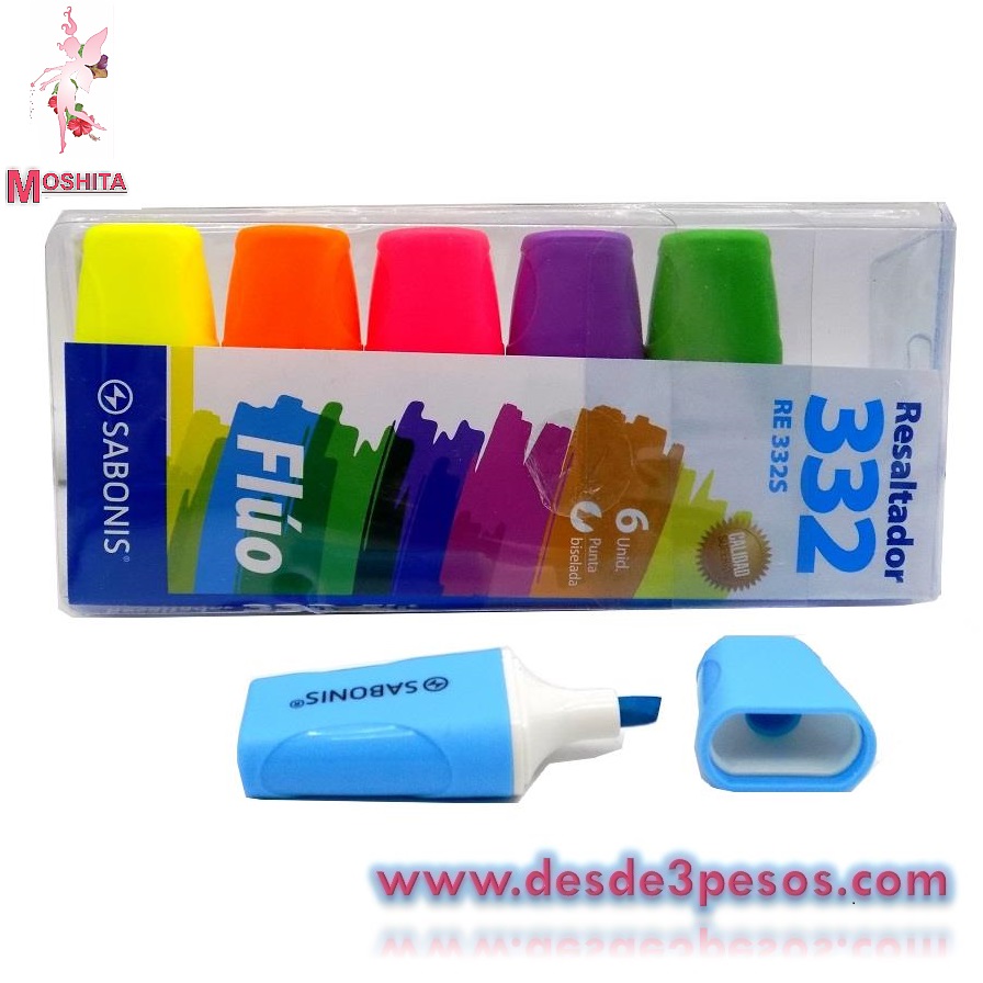 Marcador RESALTADOR punta biselada 6 tonos 6.5cm.