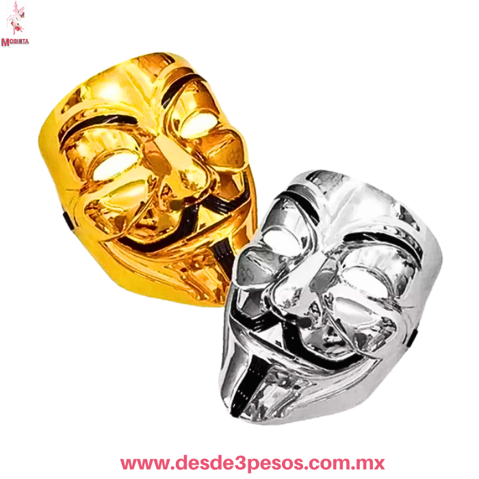 | Máscara V de Venganza Guy Fawkes Anónimo 19x17cm Dorada o Plateada WSJ-5549