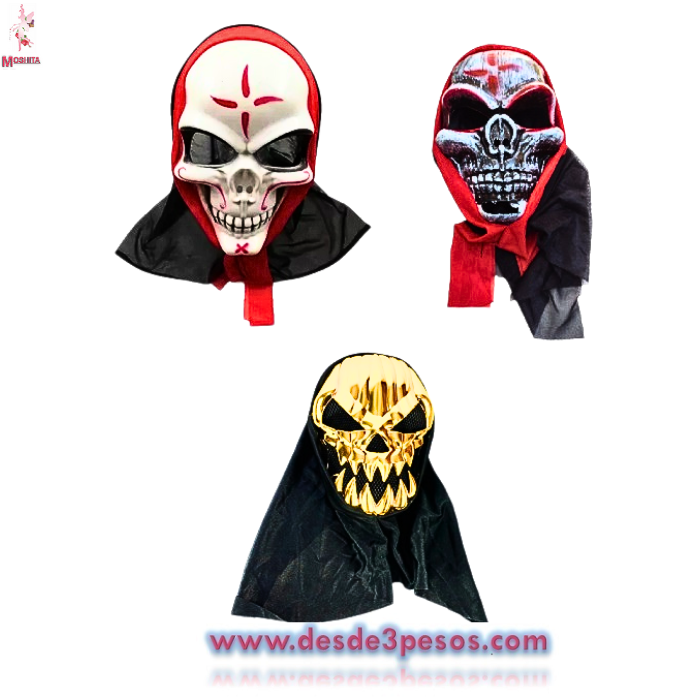 Mascara con Velo para Halloween de plástico resistente 3 modelos 25 x 17cm.