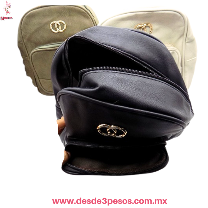 Mochila ViniPiel de Durazno 2 Diviciones detalles al frente y correas delgadas 23 x 25 cm.