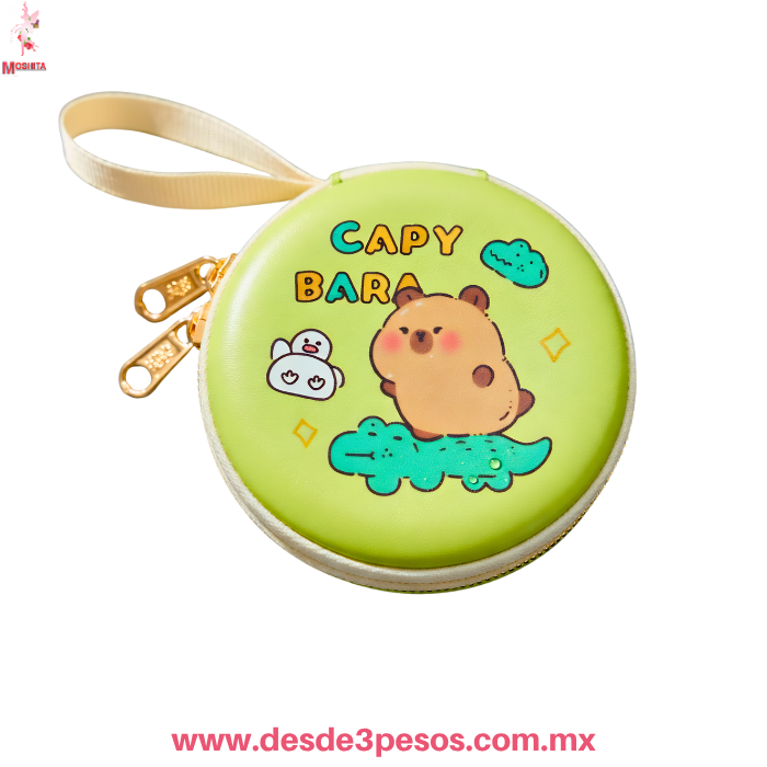 Monedero Redondo de Metal con Figuras de Capibara 8 cm. De diametro MC24-M15