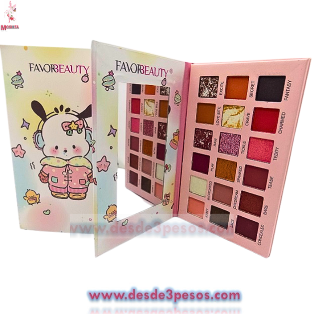 Paleta de Sombras FAVOR BEAUTY PERSONAJES 18 Tonos Matte y glitter 4 presentaciones 21 x 16.5 cm.