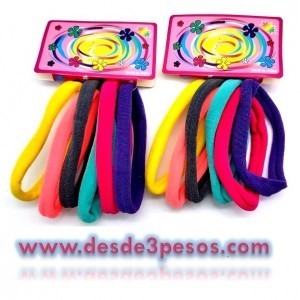 Paq.c/12 Pzas c/ 6 Ligas Licra GRANDE en Colores MATE 8.5cm