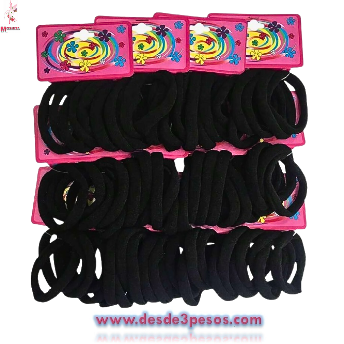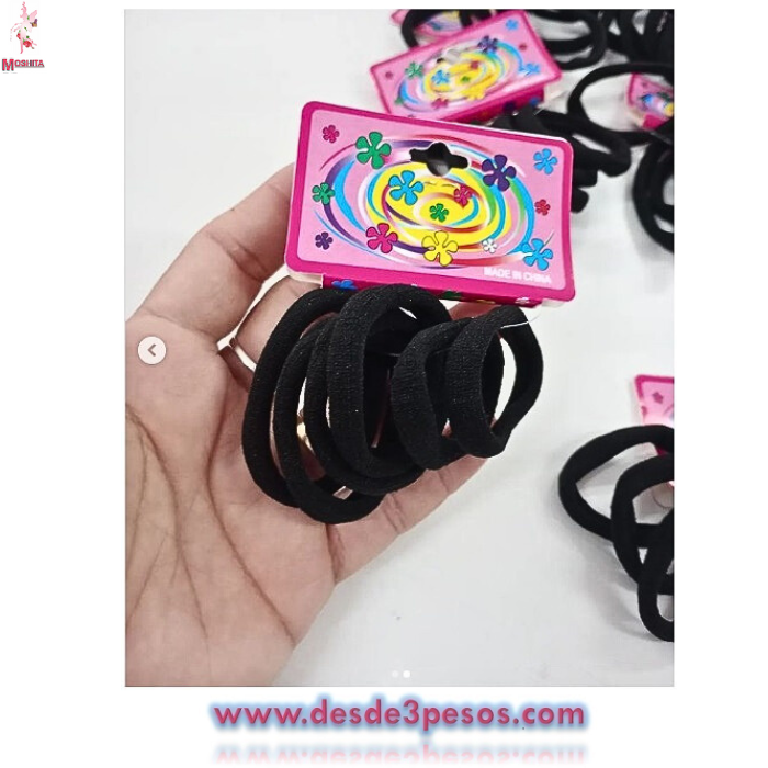 Paq.c/12 Pzas c/6 Ligas Licra MEDIANA en Color NEGRO 5.5 cm