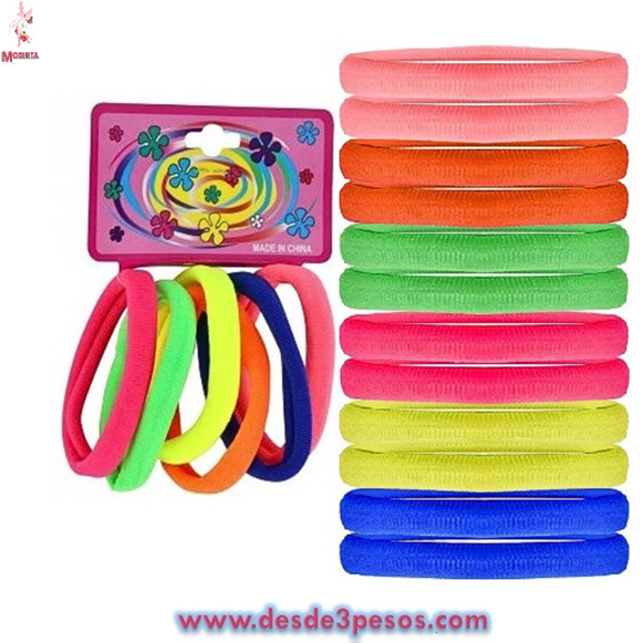 Paq.c/12 Pzas c/ 6 Ligas de Licra GRANDE en Colores NEON 8.5 cm