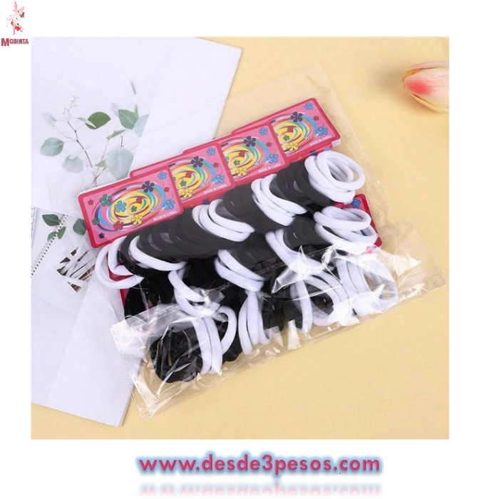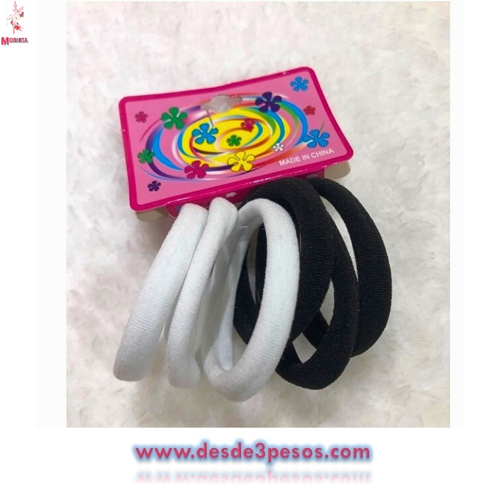 Paq.c/12 pzas c/6 Ligas Licra CHICA en BLANCO Y NEGRO 3.5 cm