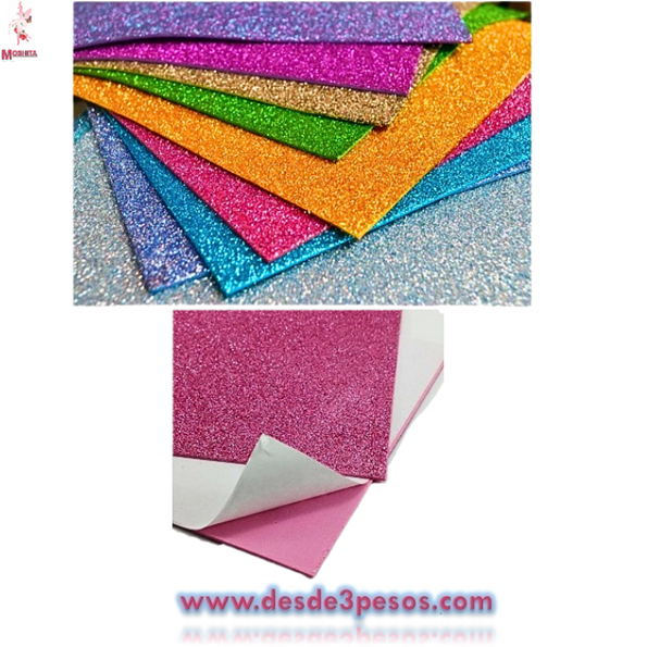 Paquete con 10 hojas De Fomi Diamantado con Pegol Adherente 20 x 30cm.