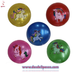 Paquete con 12 Pelota Plastica con figura de Unicornio en varios colores