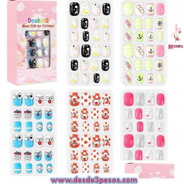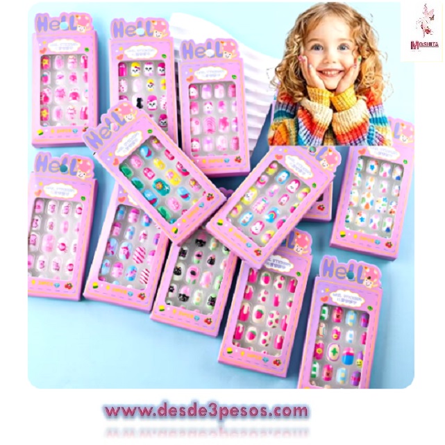 Paquete con 12 Uñas de NIÑA decoradas en varios modelos